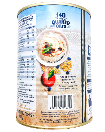 Wholesale Quaker Dried Instant Oatmeal Super Oats Grain 400G Tin