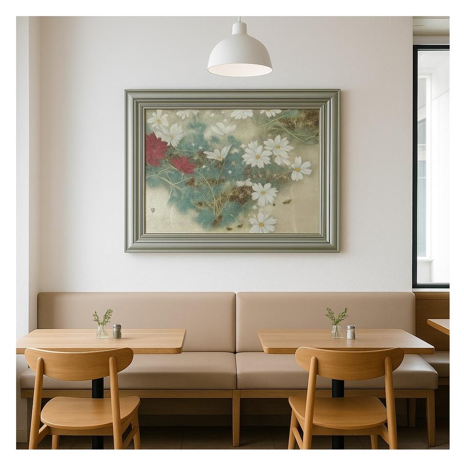 Wholesale Quality Yoshiko Tanimura Large Artistic Japanese Traditional Nihonga Cosmos Wall Art Decor Traditional Mineral