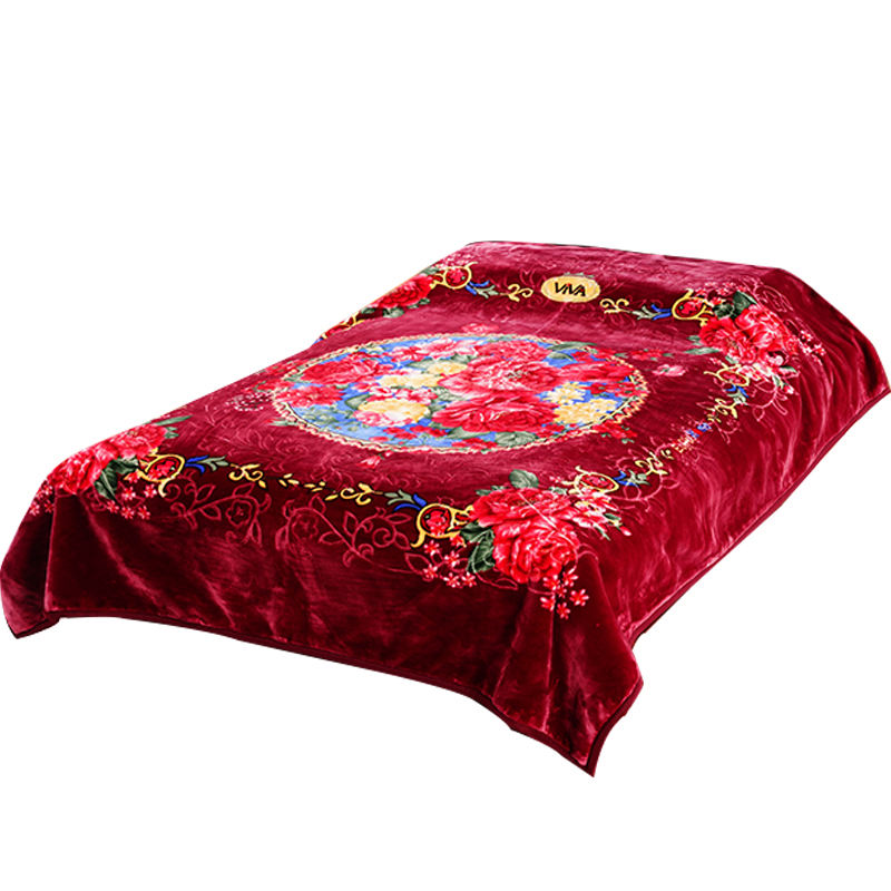 Wholesale Queen Size 200x240 cm Korean Eco-Friendly Polyester Mink Raschel Quilt Sets 2Ply 4KG Soft Winter Knitted Blankets