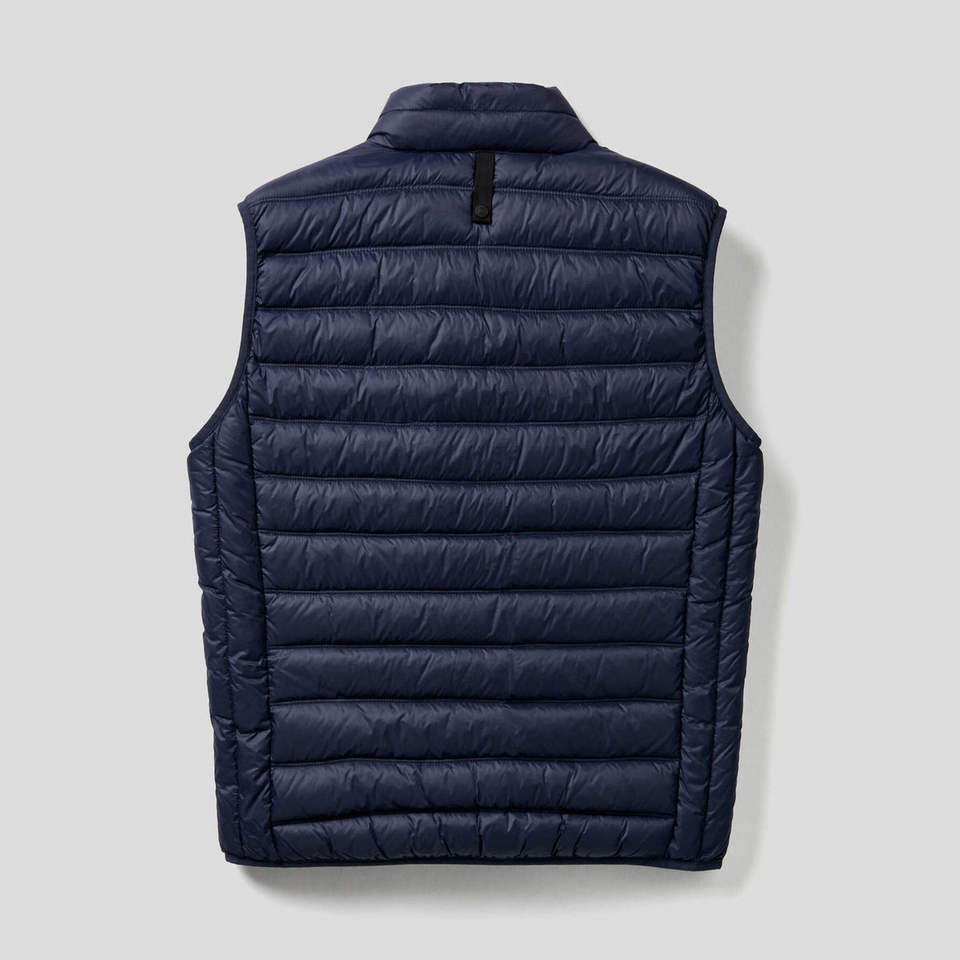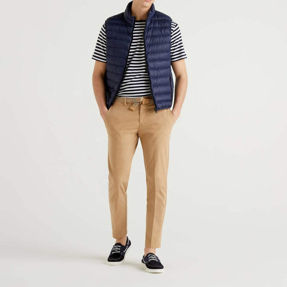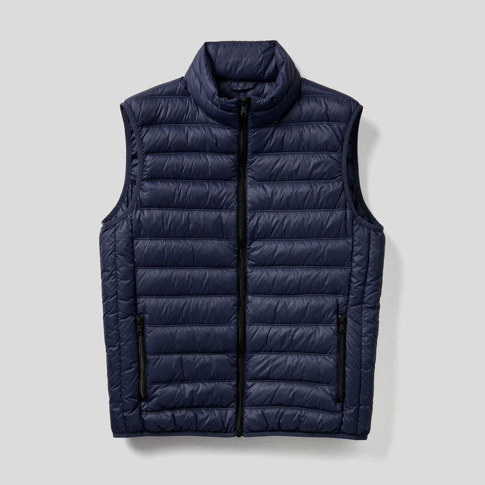 Wholesale Quilted Down Plus Size Puffer Vest 2026 High Quality Solid Blue Color Side Pockets Zipper Style Puffer Men's Jackets