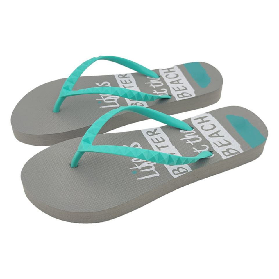 Wholesale Quote Printed Flip Flops Unisex Grey Beach Sandals Life Is Better At The Beach Summer Slippers Custom Logo