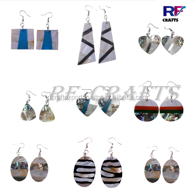 Wholesale RF Crafts Indian Earrings Romantic Black & White Mother Pearl Drop Irregular Shape for Weddings Anniversaries Parties