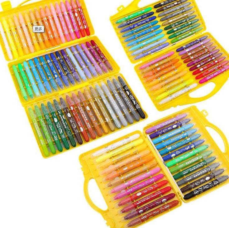 Wholesale Rainbow Color Plastic Erasable Crayon for Kids Dual Tip Wax Crayon with pp Box