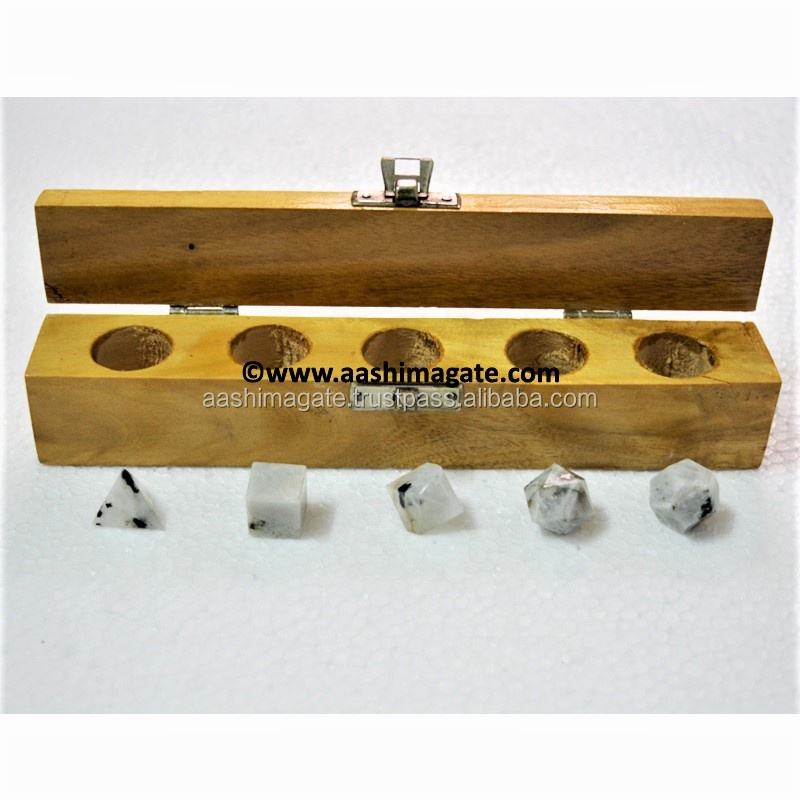 Wholesale Rainbow Moonstone 5-Piece Sacred Geometry Set for Meditation Reiki Box Contains Amethyst Gems Healing Crystal Studies