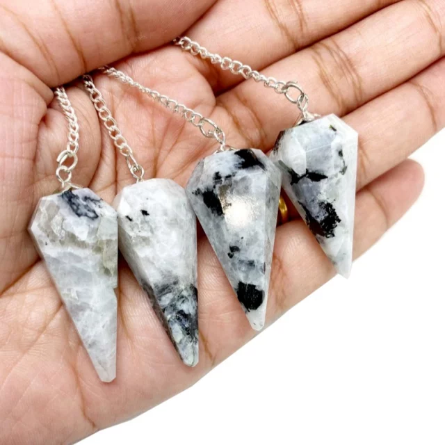 Wholesale Rainbow Moonstone Pendulums Faceted Cone Natural Crystals Gemstone Agate/Quartz Dowsing Pendulum