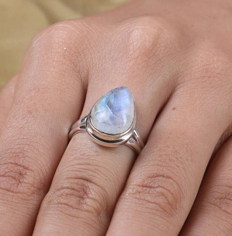 Rainbow Moonstone Silver Ring