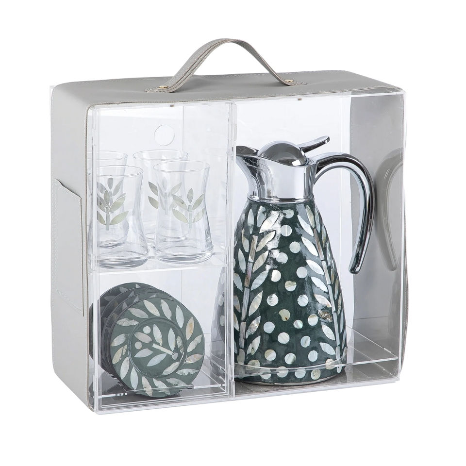 Mother of Pearl Thermos with Glass Cups and Saucers
