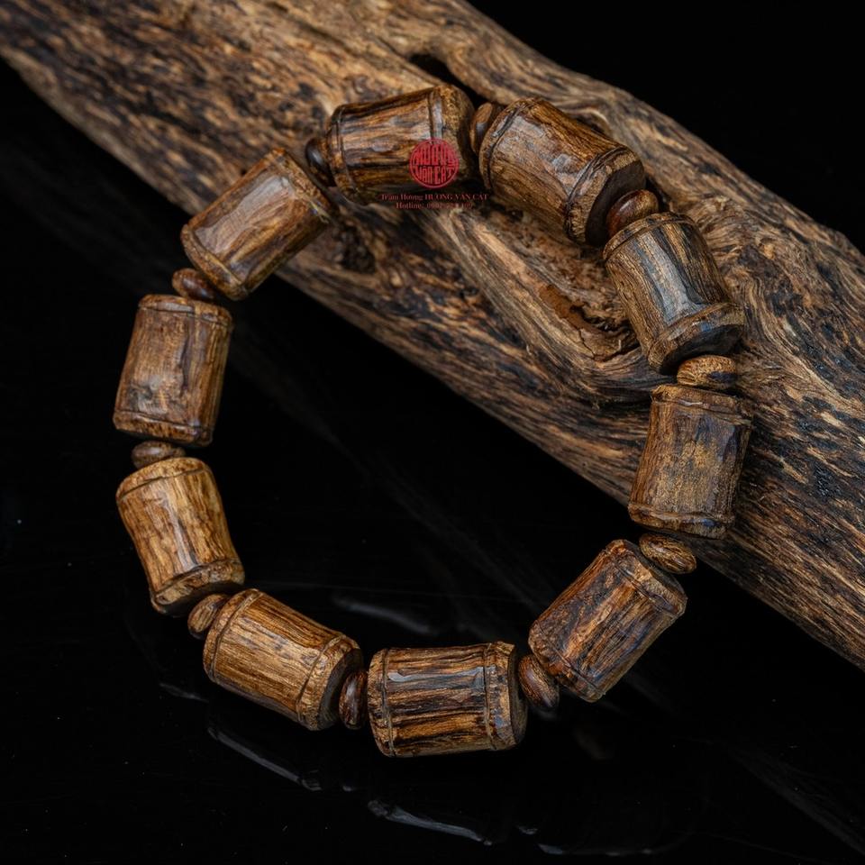 Wholesale Rare Fully Sinking Agarwood Bamboo Bracelet 14.3g, Natural Aged Ruc Oud Wood, High Grade Jewelry