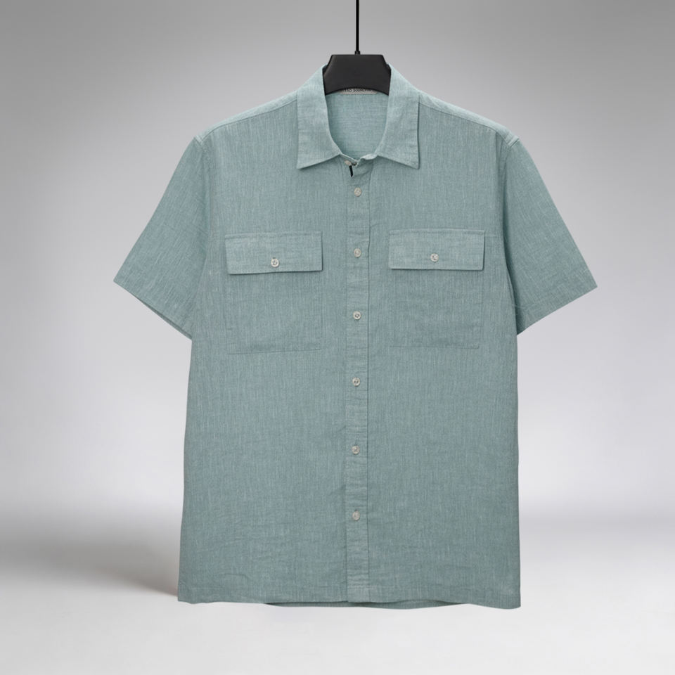 Wholesale Rate Men’s Pastel Green Casual Short Sleeve Shirt Linen Cotton Mix Fabric
