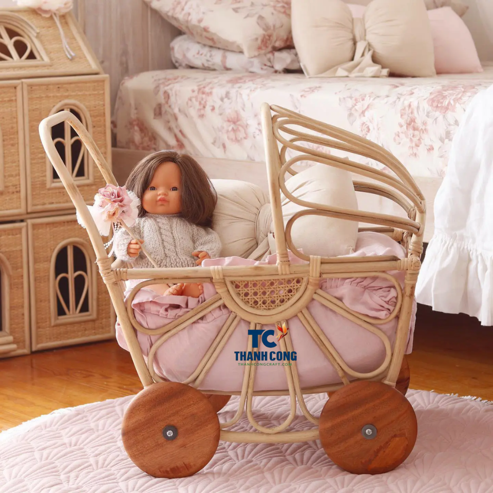 Wholesale Rattan Baby Stroller Doll Stroller Toy Rattan Doll Teddy Carriage Prams Wholesale Baby Dolls Stroller for Toddlers