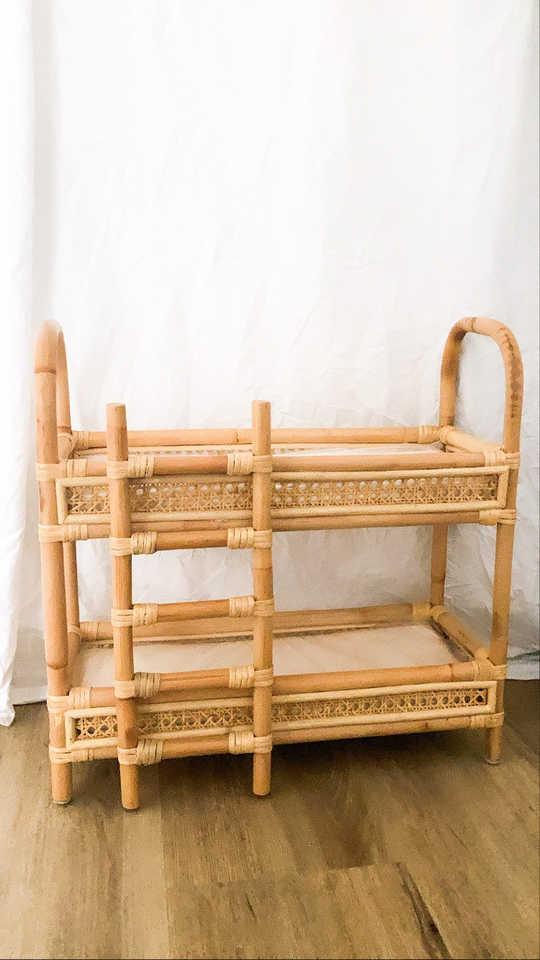 Wholesale Rattan Dolls Bunk Bed Handmade Wicker Doll House Accessories Ideal for Kids Playing Time Rattan Pretend Play Toy