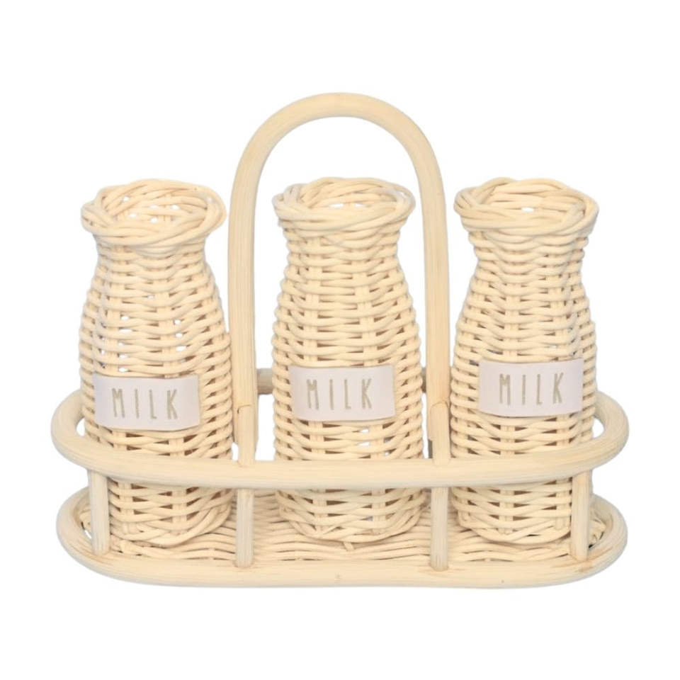 Wholesale Rattan Milk Bottle with Rack Kids Toy Wicker Bottle Set