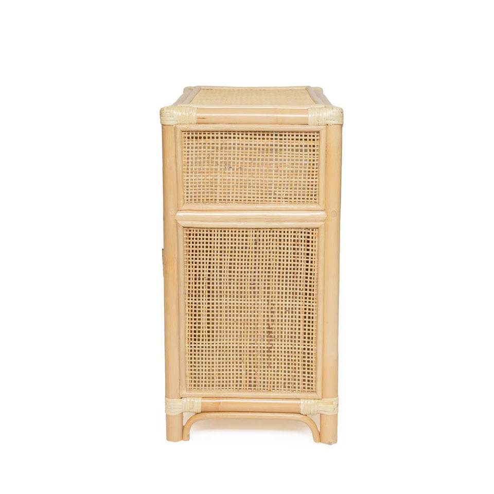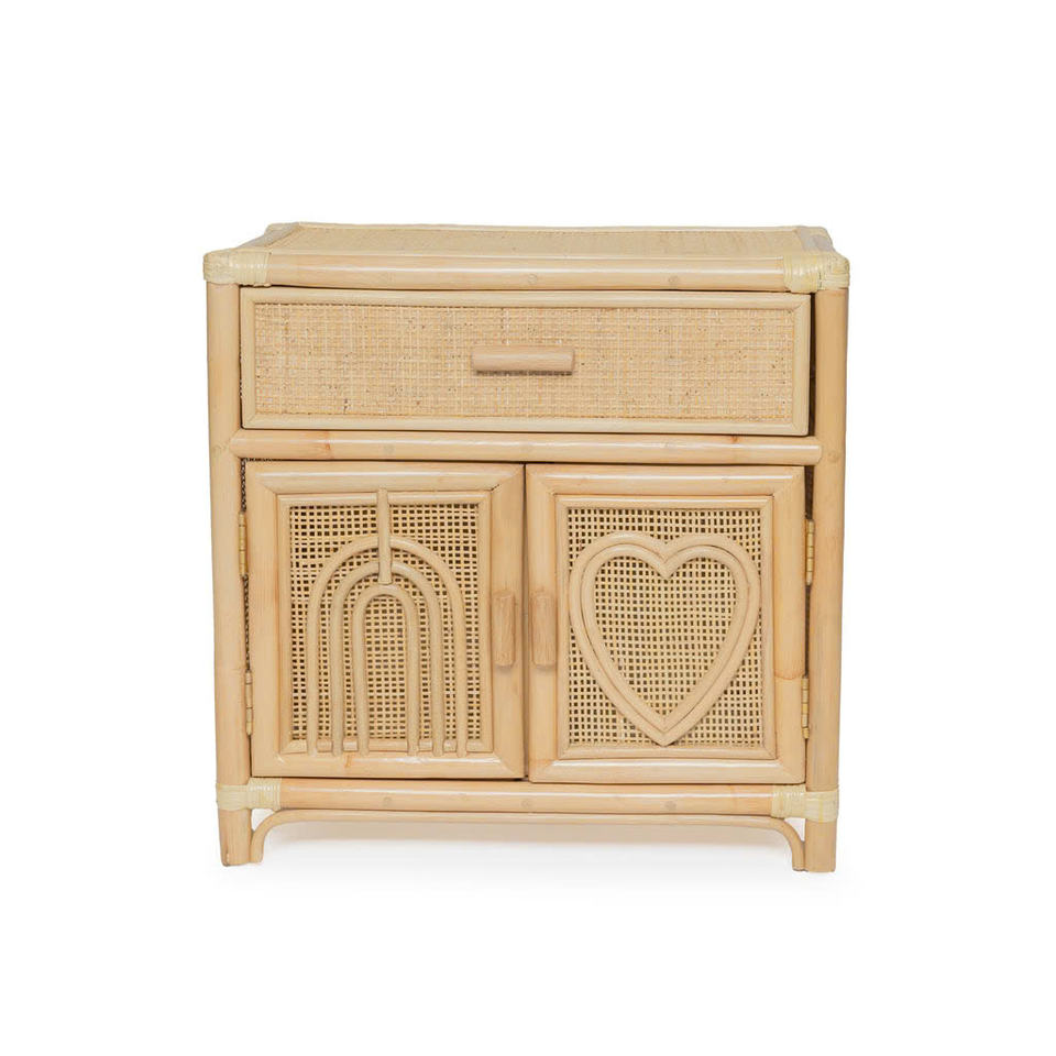 Rainbow & Heart Inlay Rattan Kids Wardrobe, Whimsical Handcrafted Wicker Storage with Delicate Drawer Detail