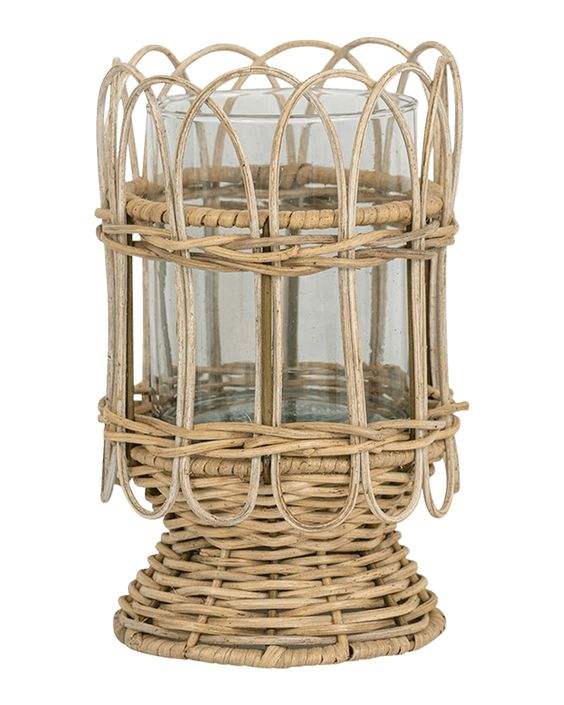 Wholesale Rattan Vase Glass Holder Indian Rattan Glass Candle Holders Cane Wrapped Mug Glass Candle Wicker Wrapped Glass Vase