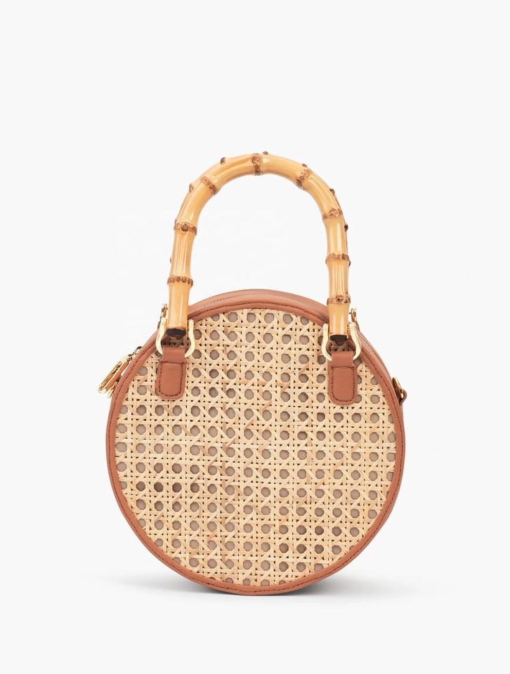 Wholesale Rattan Webbing Bag Rattan Leather Bag Summer Beach Bag Natural Woven Basket With Leather Nhatminh