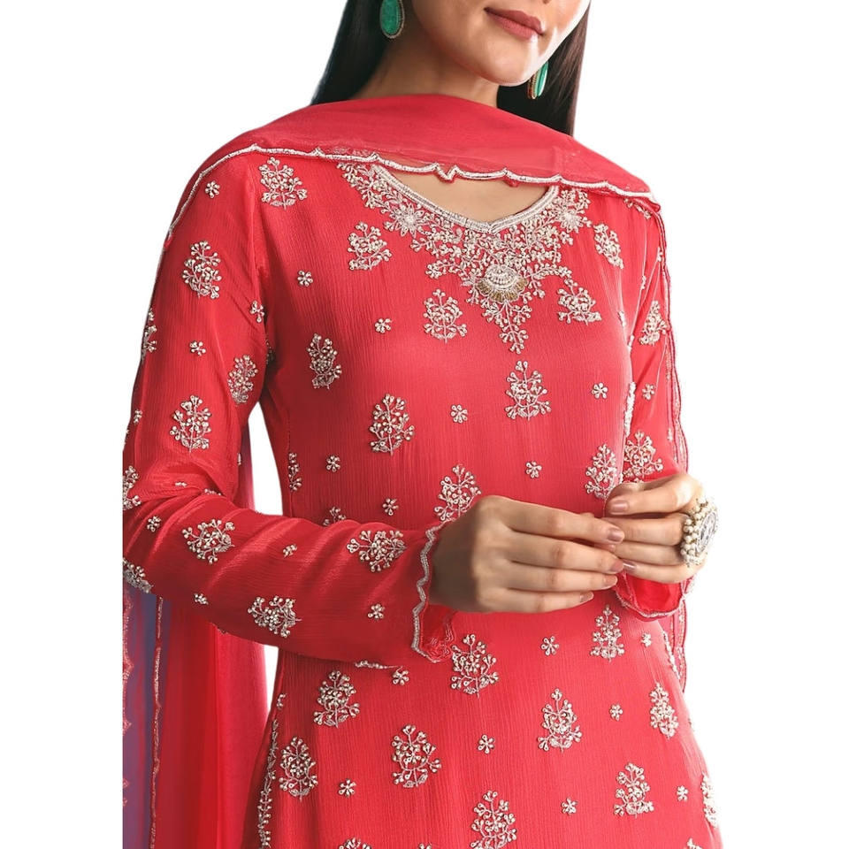 Wholesale Red Chinon Kurta Sharara Suit with Moti Cutdana Work for Wedding Party Wear Festive Reception and Custom Ethnic Orders