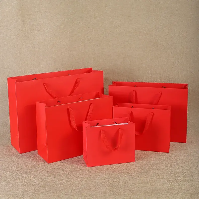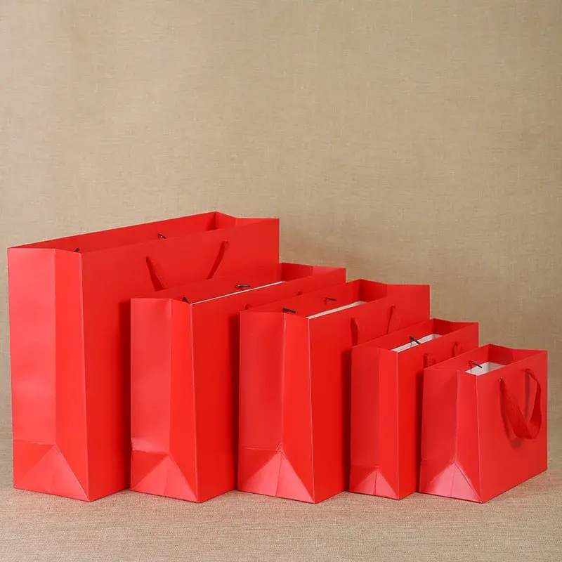 Wholesale Red Kraft Paper Gift Bags with Handles for Wedding Birthday Parties and Shopping Elegant Packaging