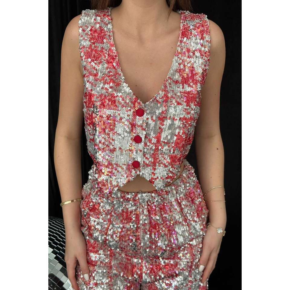 Wholesale Red Sequin Party Jumpsuit Set Vest and Pants for Bridesmaids Festivals and Night Out