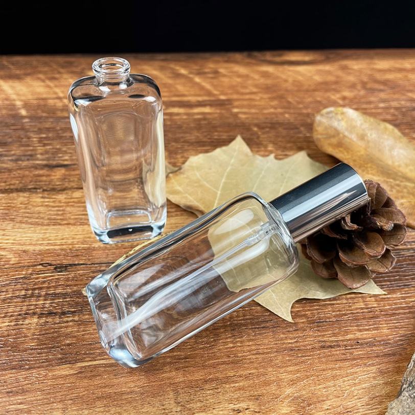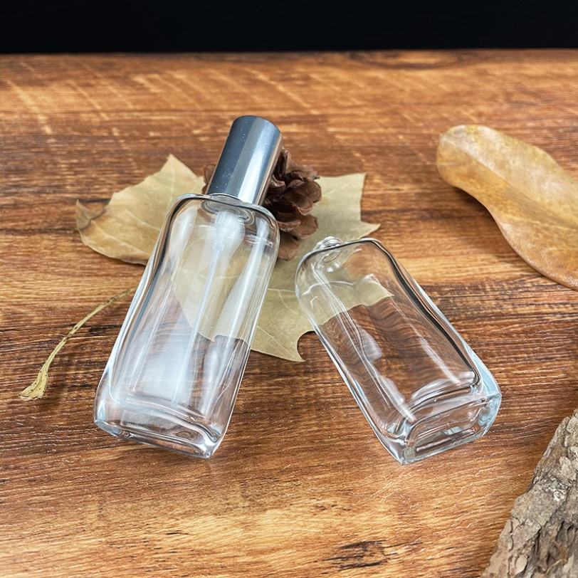 Wholesale Refillable Custom Glass Perfume Spray Glass Cosmetic Bottle 25ml Flat Square Perfume Bottle