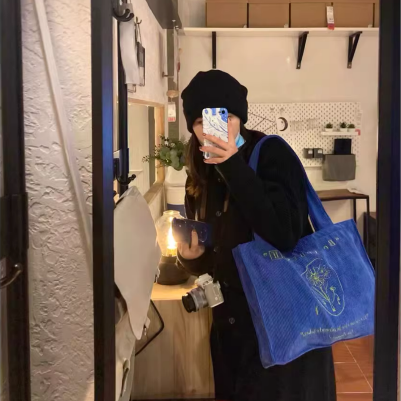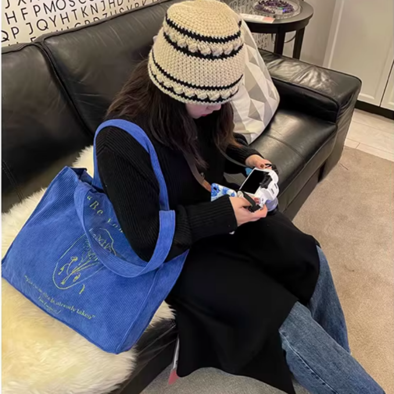 Wholesale Reusable Eco-friendly Corduroy Tote Bag Large Capacity Shopping Bag Promotional Gift Travel Solid Color Embroidery