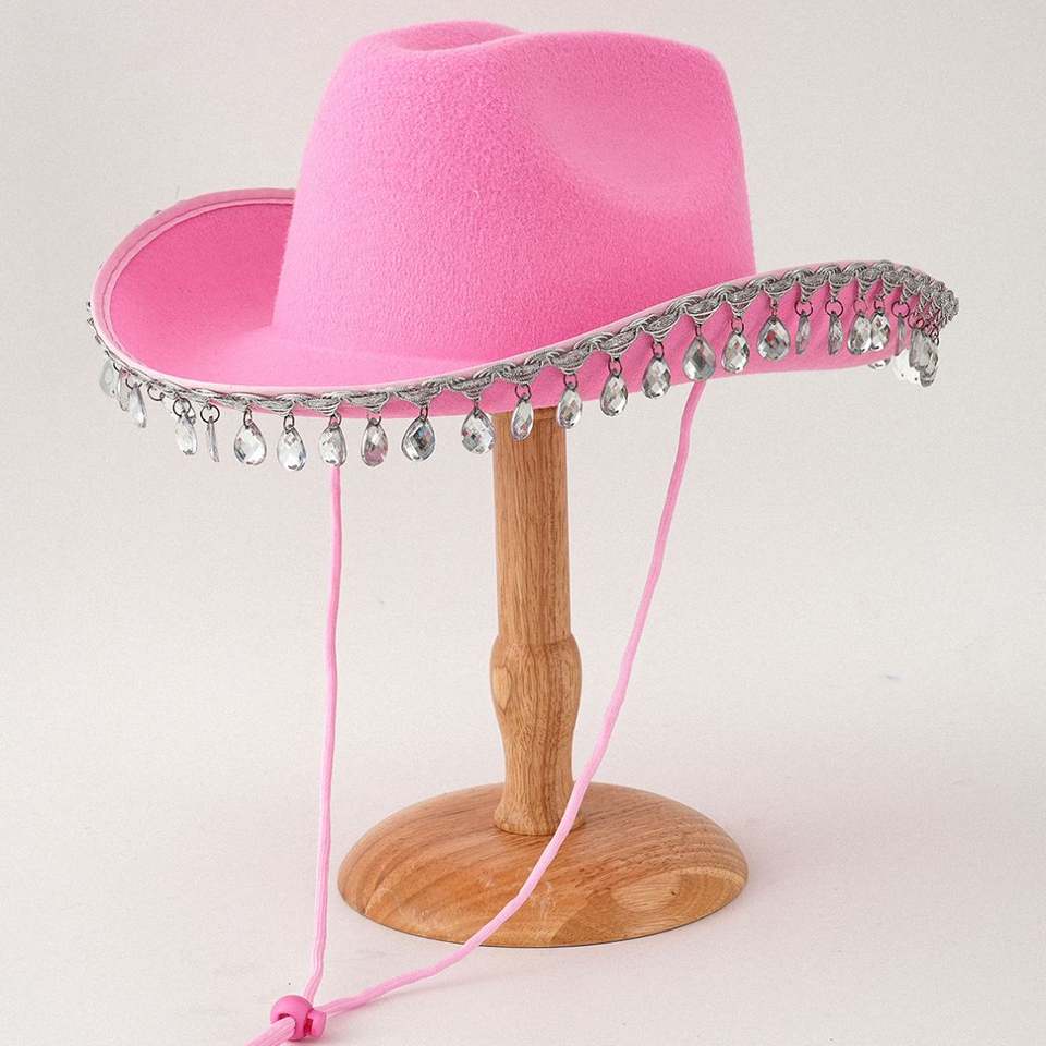 Name:Western Style Cowgirl Pink Cowboy Hat With Diamond Tassel