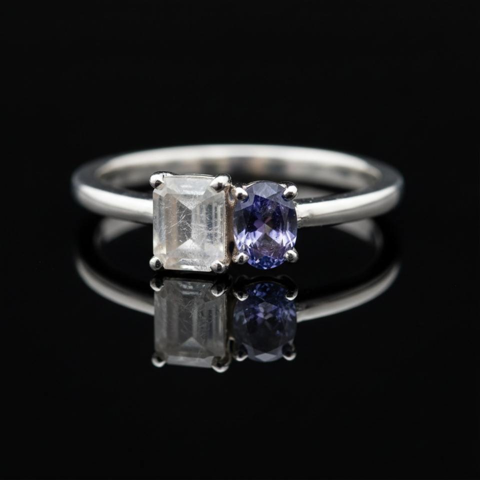 Wholesale Rhodium Plated Fine Jewelry Oval Cut Natural Tanzanite Aquamarine Two-Stone Sterling Silver Wedding Ring Prong Setting