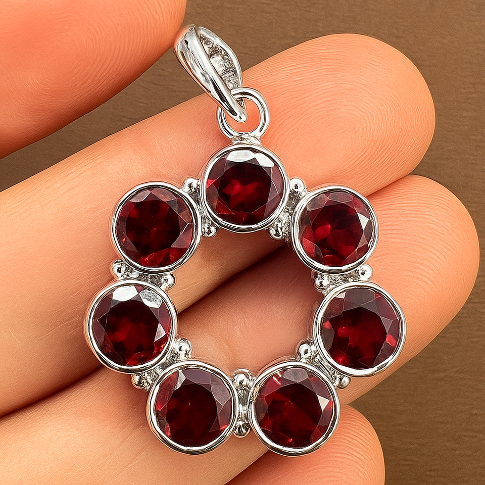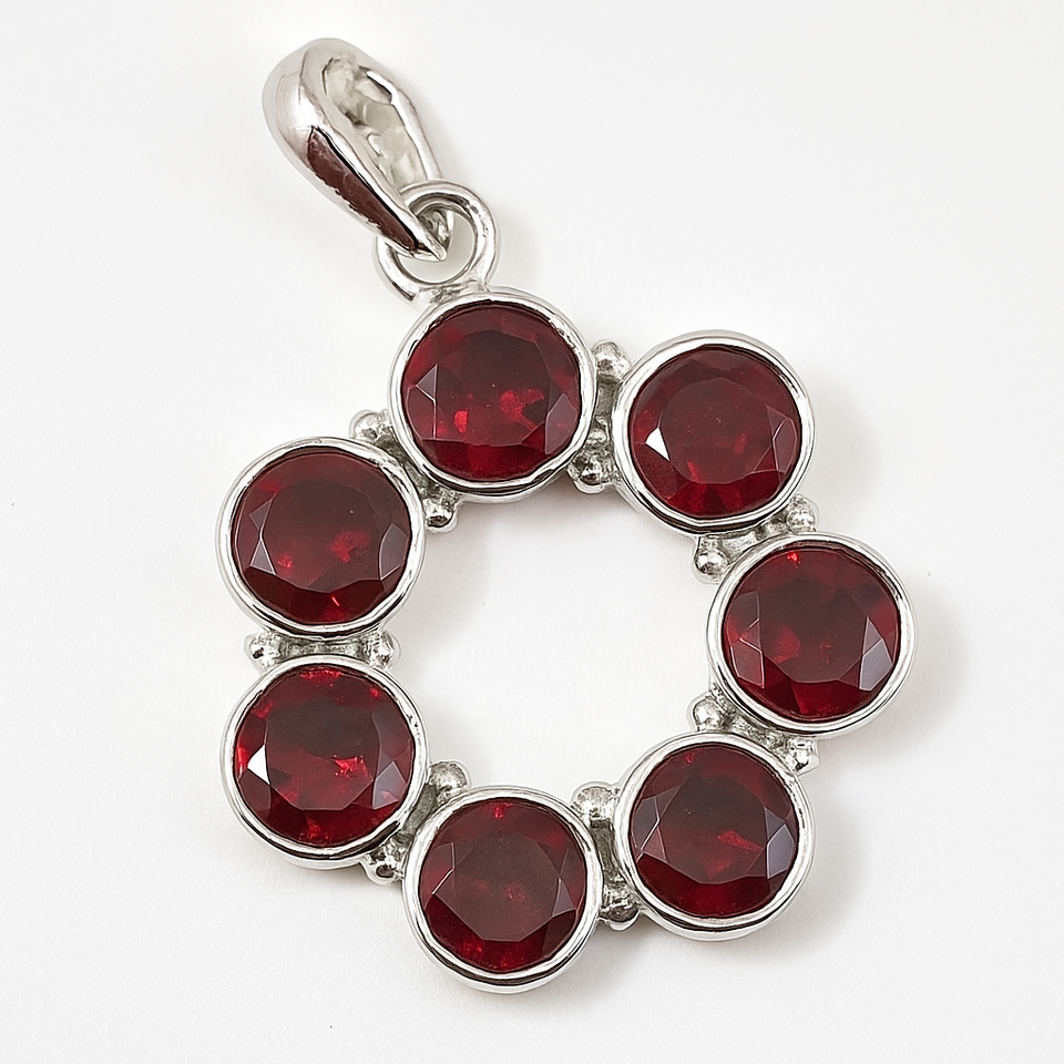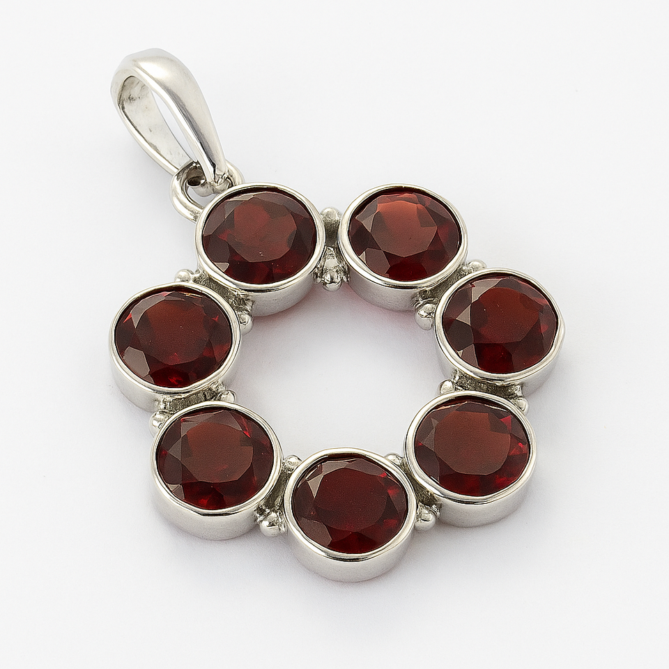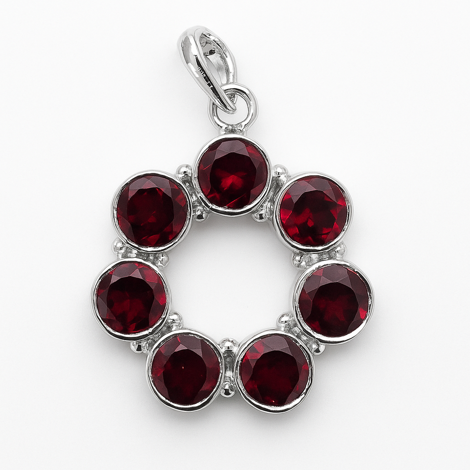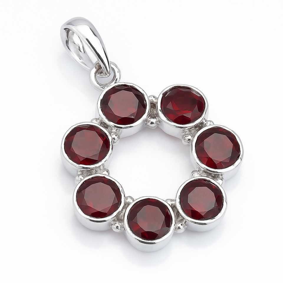 Wholesale Rhodium Plated Natural Garnet Pendant in Sterling Silver-Minimalist Round Red Gemstone Jewelry