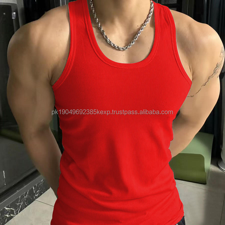 Wholesale Ribbed Cotton Tank Tops Men O-Neck Quick Dry Sport Gym Vest Breathable 3D Printed Design Tank Top