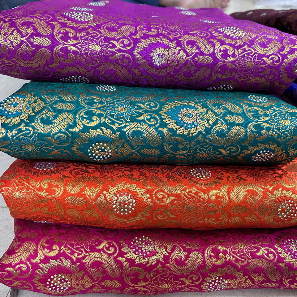 Wholesale Rich Jacquard Brocade Fabric Gold Thread Embroidery for Girls Traditional Outfits Cushion Covers Nonwoven Techniques