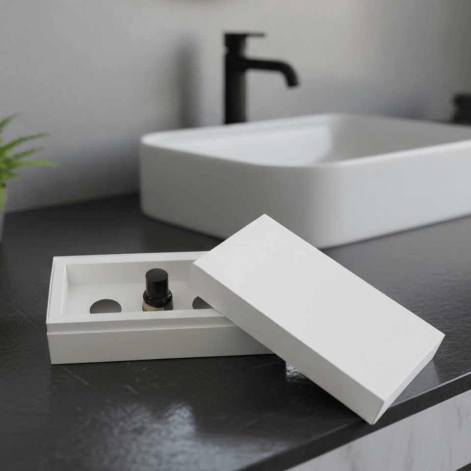 Wholesale Custom Logo Eco-friendly Cardboard Cosmetics Packaging Box | Matte Laminated Embossing Sponge Lining Makeup Skincare