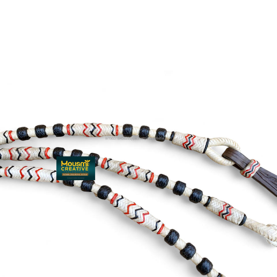 Wholesale Romal Rein Leather Grips for Equestrian Horse Riding Decorated with Beads & Accents Loop End Rein