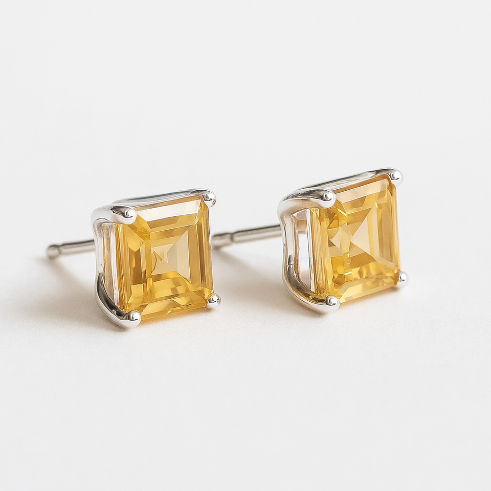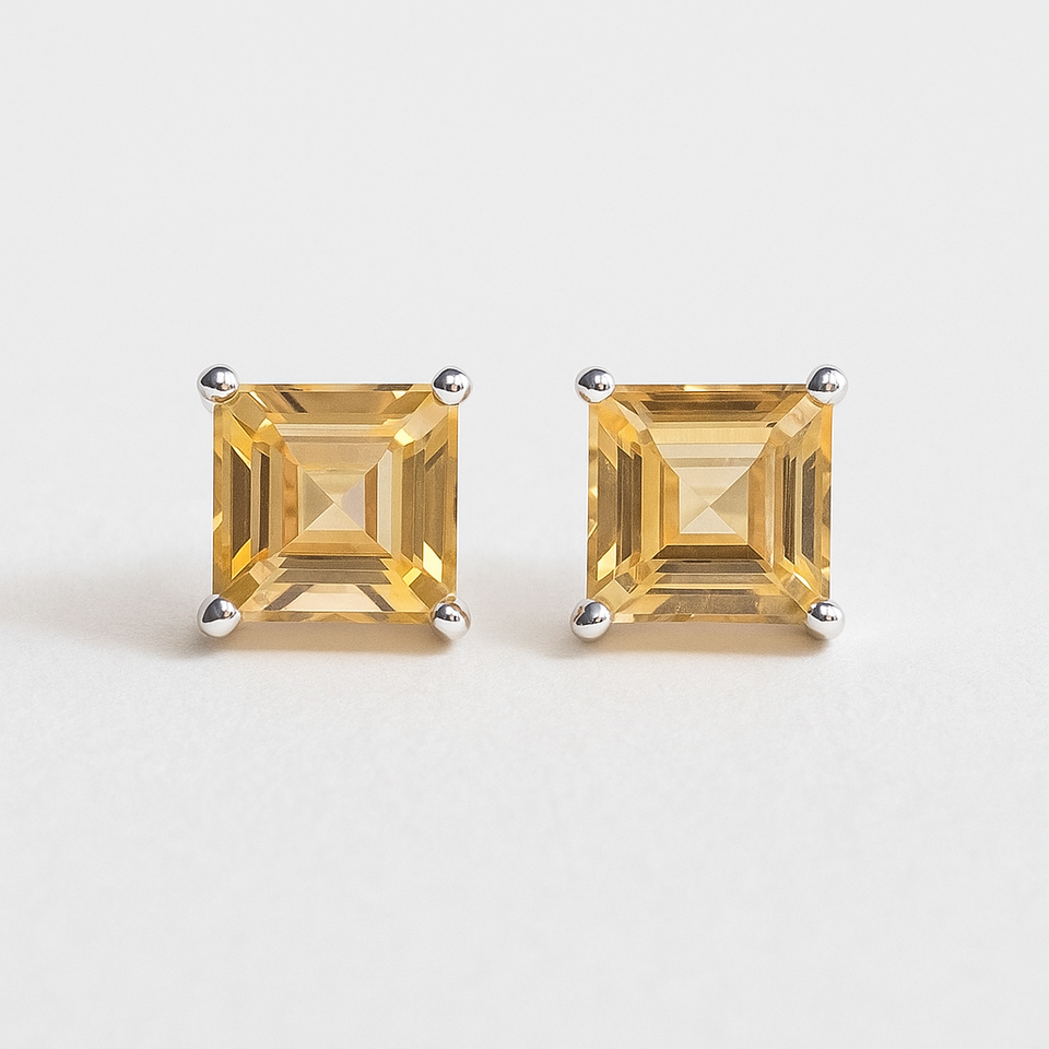 Wholesale Romantic Princess Cut Citrine Stud Earrings Rhodium-Plated Sterling Silver Natural Gemstone Children Women Gift
