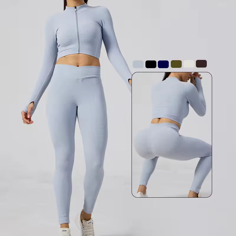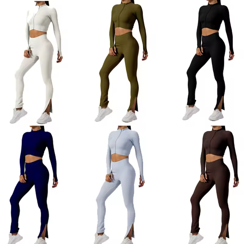Wholesale Ropa Athleisure Fitness Clothing Women Gym Clothes Kit Sweat Suit Butt Lift Women Long Sleeve 4 Piece Yoga Sets