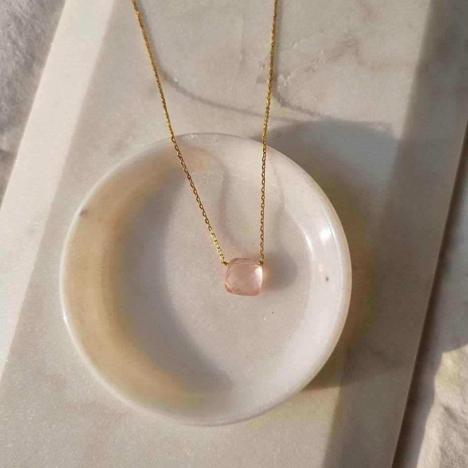 Wholesale Rose Quartz Square Carved Pendant Brass Gold Plated Chain Handmade Gemstone Charm Beads Jewelry for Women In Bulk