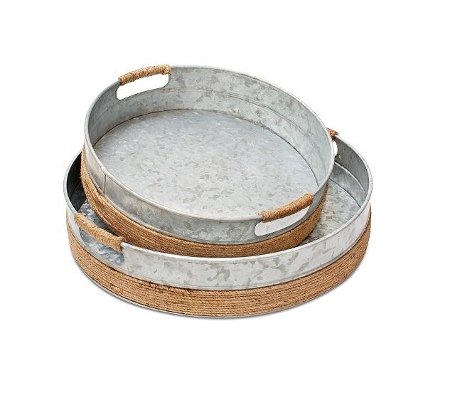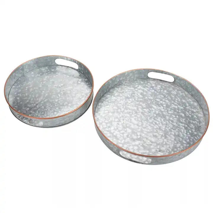 Wholesale Round Galvanized Serving Tray With Copper Handle Farmhouse Vintage Decor Tabletop Food & Drinks Serving Tray