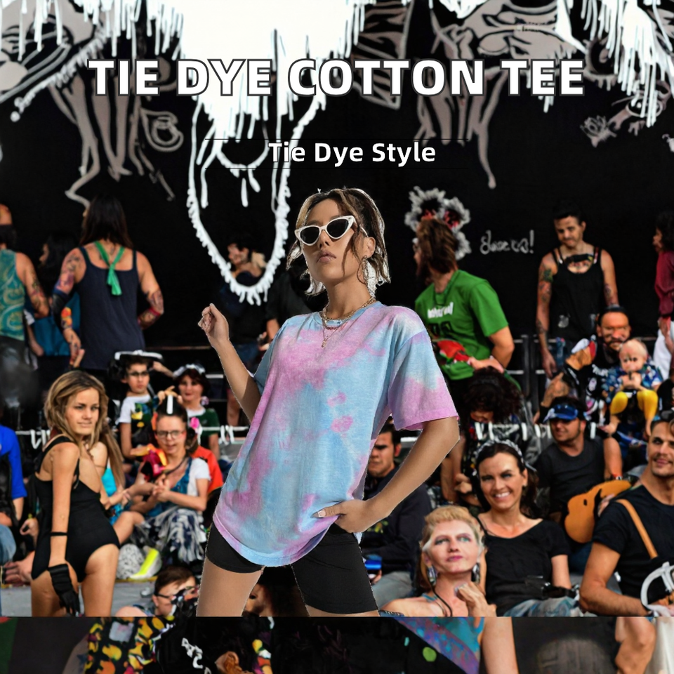 Wholesale Round Neck Tie-Dyed Cotton T-Shirt for Women Fashionable 100% Knitted Cotton Custom Logo Digital Printing Mix Color