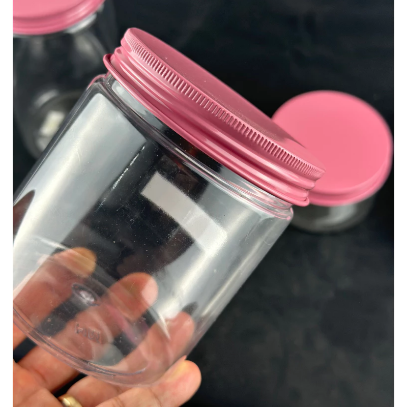 Wholesale Round PET Plastic Jars with Aluminium cap Pink cap for Food Storage Custom Logo Printing for Dry Nuts Vietnam factory