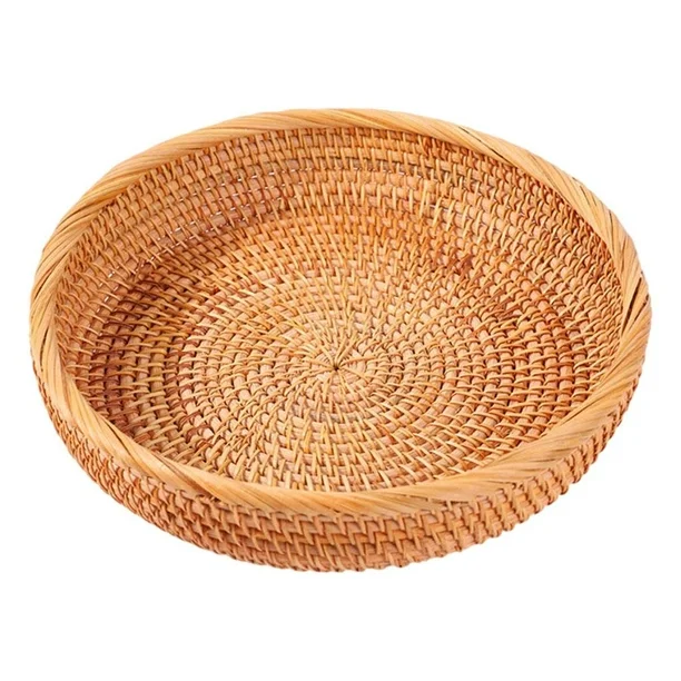 Wholesale Round Traditional Handmade Rattan Natural Fruit Tray Customize Rattan Serving Trays Home Decor Trays