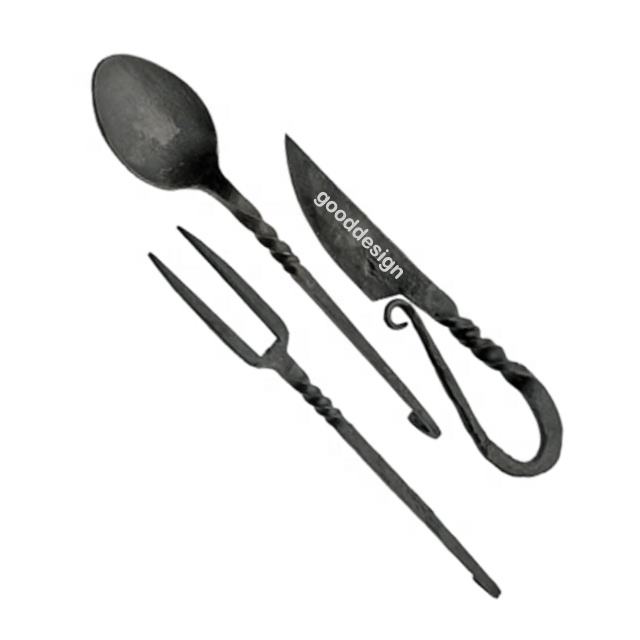 Wholesale Rustic Cutlery Set of 3 High Quality 304 Stainless Steel Forged Spoon Fork Knife for Luxury Hotel Flatware Sets