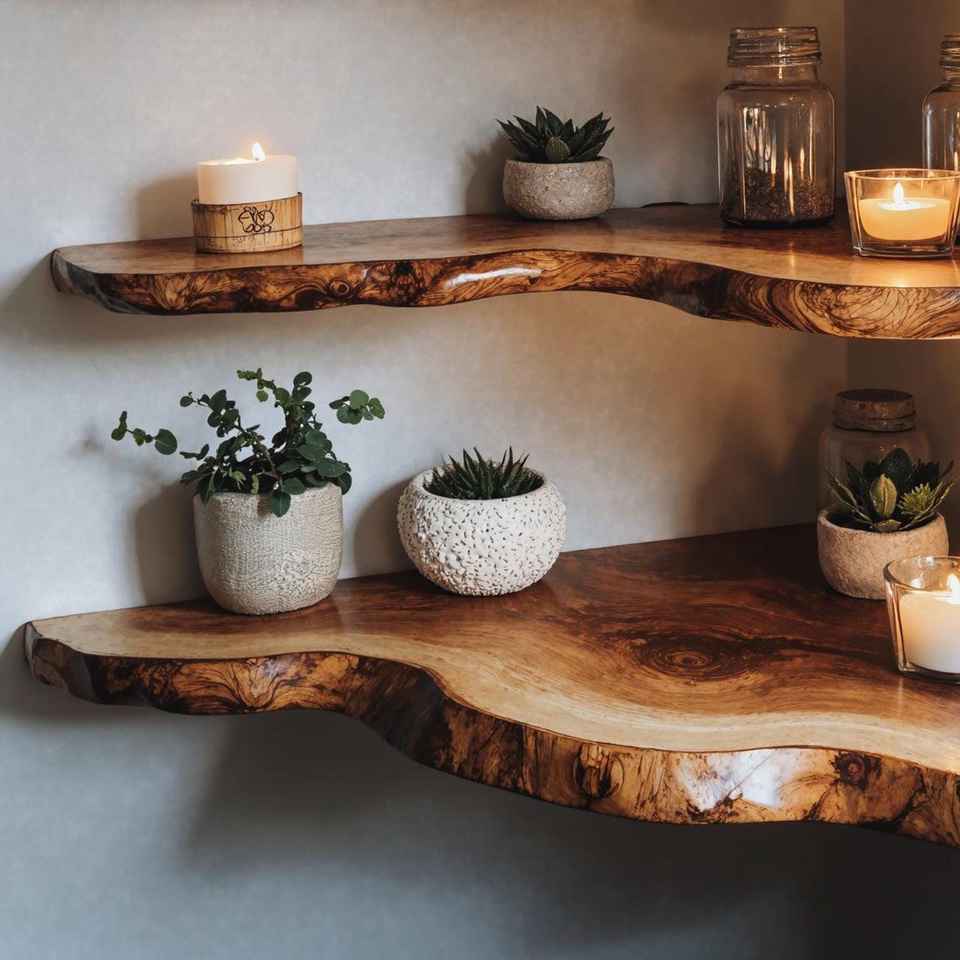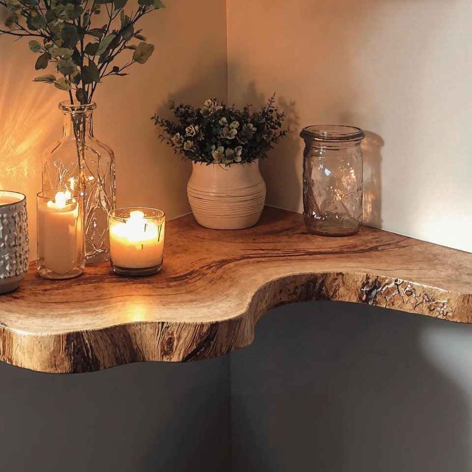 Wholesale Rustic Live Edge Corner Floating Shelf Christmas Wall Shelving Solid Wood Slab Invisible Wall Mounted Shelves