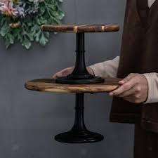 Wholesale Rustic Wood 3 Tire Farmhouse Style Wooden Round Shape 3 Tier Cake Stands for Customized Size