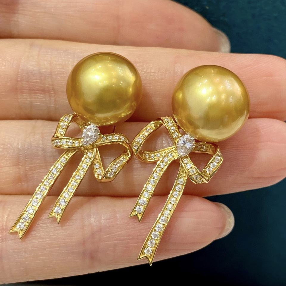 Wholesale S925 Pure Silver Natural Gold Bead Earrings Light Luxury Style Design Gift Box Manufactured Pearl Earrings