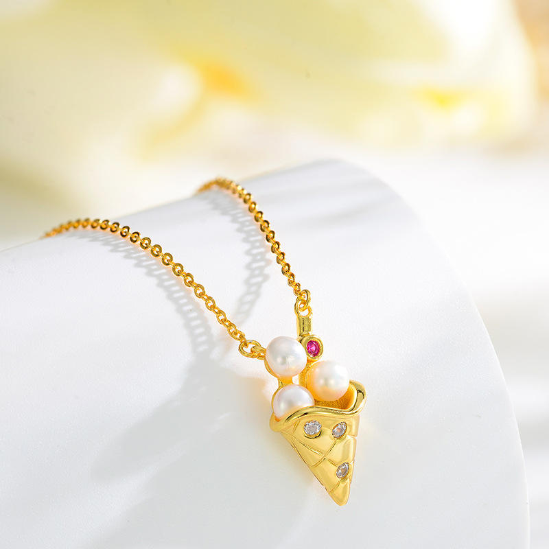 Wholesale S925 silver ice cream freshwater pearl pendant with diamond fashion party jewelry necklace for women
