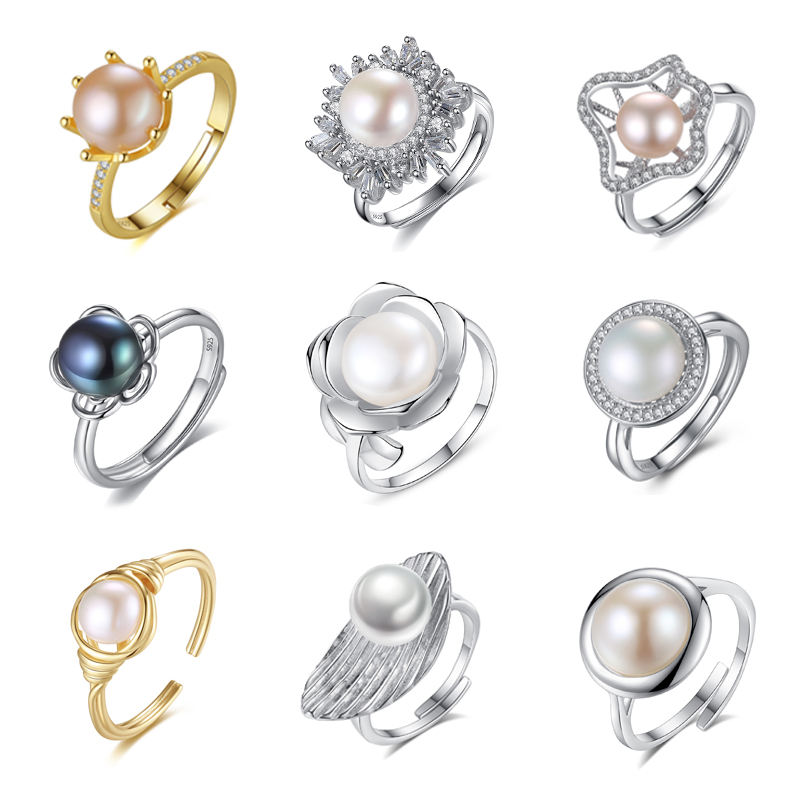 Wholesale S925 silver natural freshwater pearl zircon ring female adjustable large ring series diy fashion body jewelry