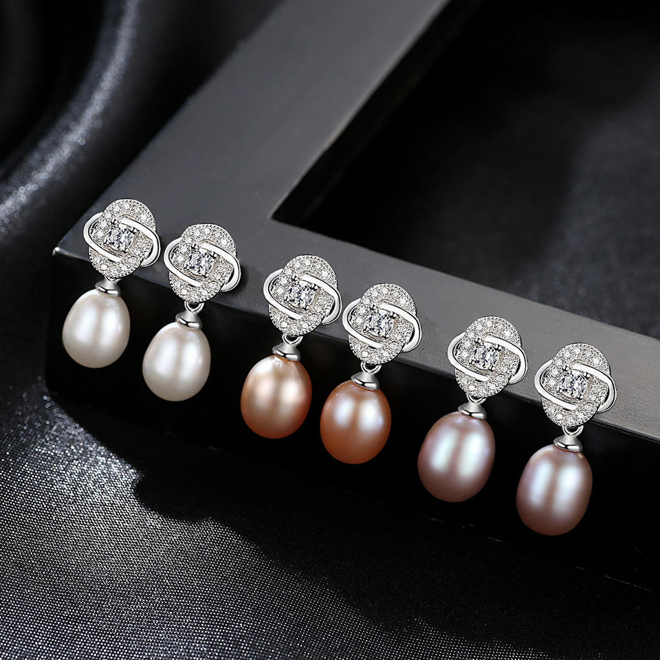 Wholesale S925 sterling silver flower freshwater pearl earrings micro inlaid zircon high-end jewelry earrings for women