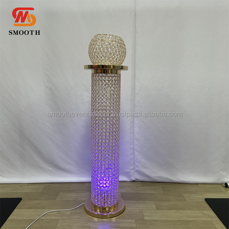 Wholesale SMOOTH Crystal LED Tall Flower Vase Stand Road Lead Wedding Centerpiece Metal for Parties and Events