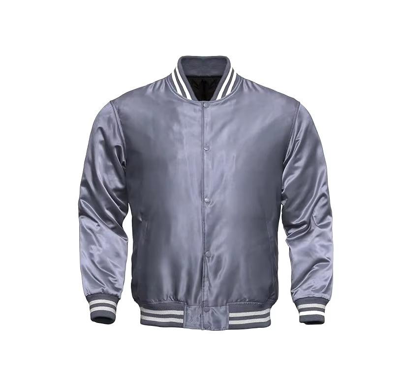 Wholesale Satin Bomber Jacket with Patchwork Design Stand Collar College Team Embroidery for Men Women