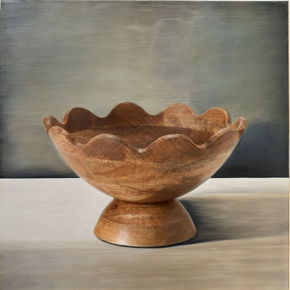 Scalloped Wooden Pedestal Bowl made in Vietnam