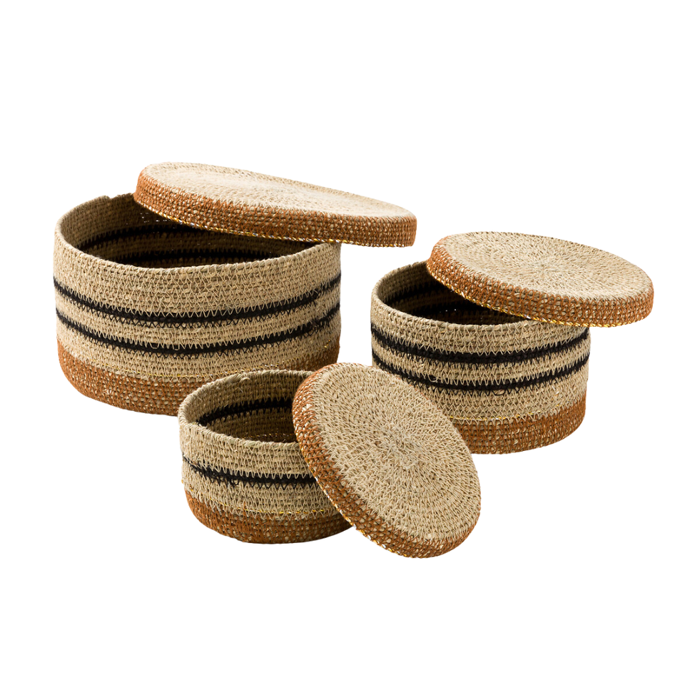 Product name:Seagrass Basket Set with Lids Rustic Handcrafted