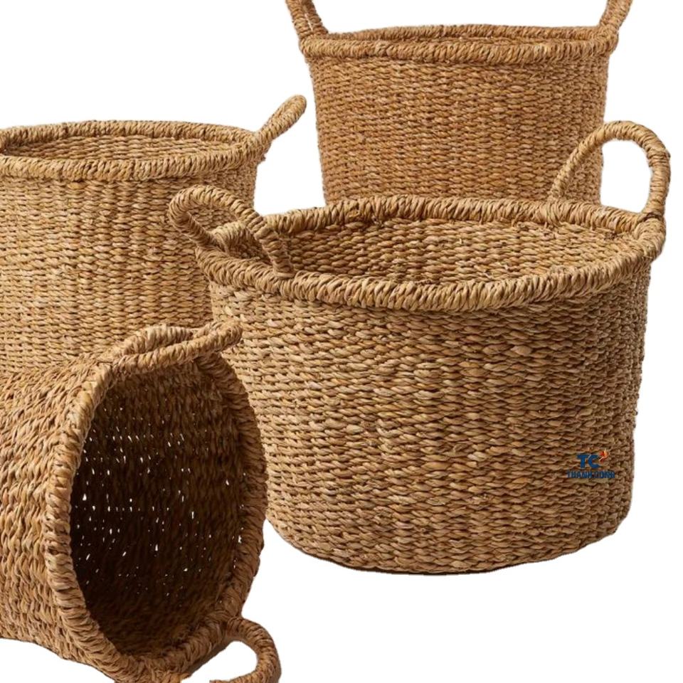 Wholesale Seagrass Basket Woven Seagrass Natural Seagrass Handmade Storage Plant Basket With Handles